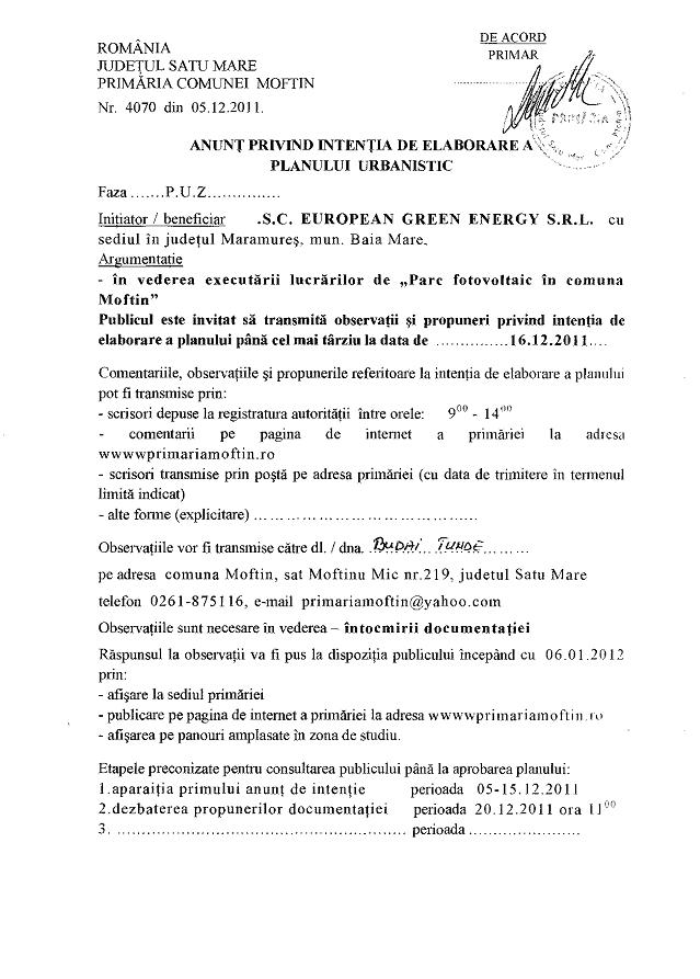 - Modernizarea / reabilitarea iluminatului public în comuna Moftin.
